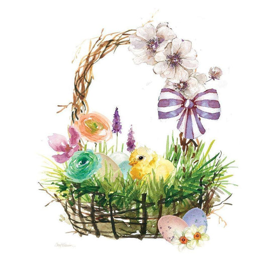 Spring Basket Chick Black Modern Wood Framed Art Print with Double Matting by Robinson, Carol