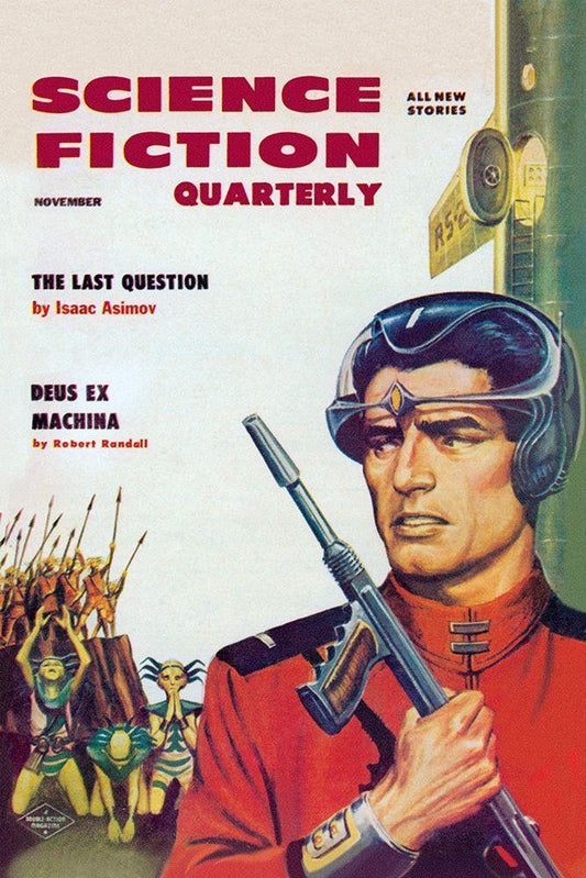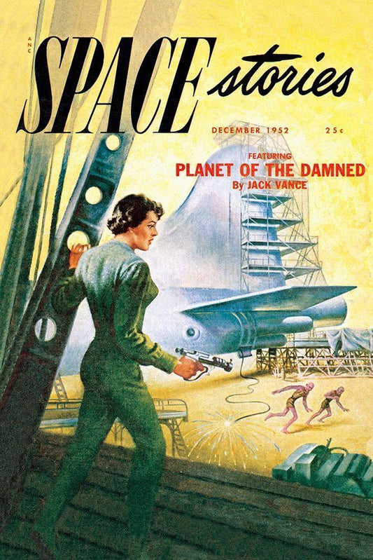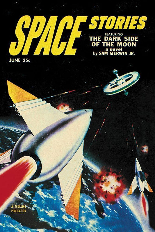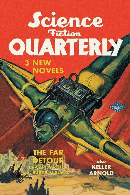 Science Fiction Quarterly: Attack from Atop Rocket Man White Modern Wood Framed Art Print with Double Matting by Retrosci-fi