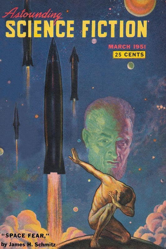 Astounding Science Fiction: Space Fear White Modern Wood Framed Art Print with Double Matting by Retrosci-fi