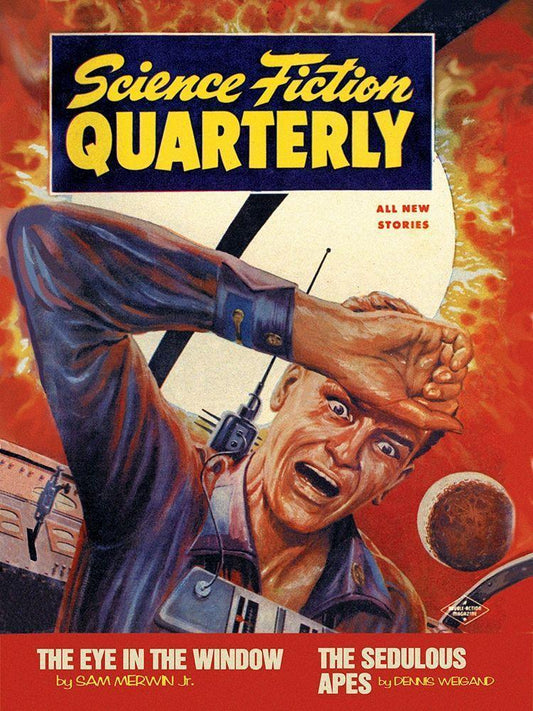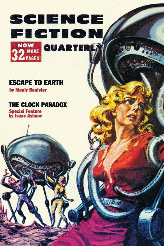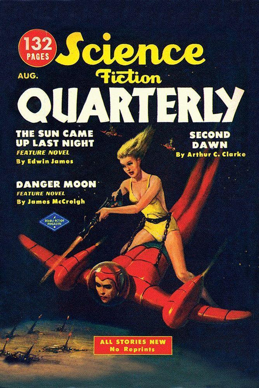 Science Fiction Quarterly: Crash Course with the Sun White Modern Wood Framed Art Print with Double Matting by Retrosci-fi