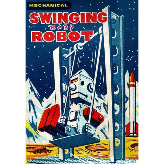 Swinging Baby Robot Gold Ornate Wood Framed Art Print with Double Matting by Retrobot