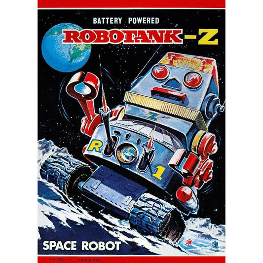 Robotank-Z Space Robot Gold Ornate Wood Framed Art Print with Double Matting by Retrobot