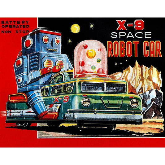 X-9 Space Robot Car Gold Ornate Wood Framed Art Print with Double Matting by Retrobot