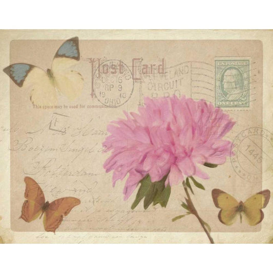 VINTAGE BUTTERFLY POSTCARD III White Modern Wood Framed Art Print by Greene, Taylor