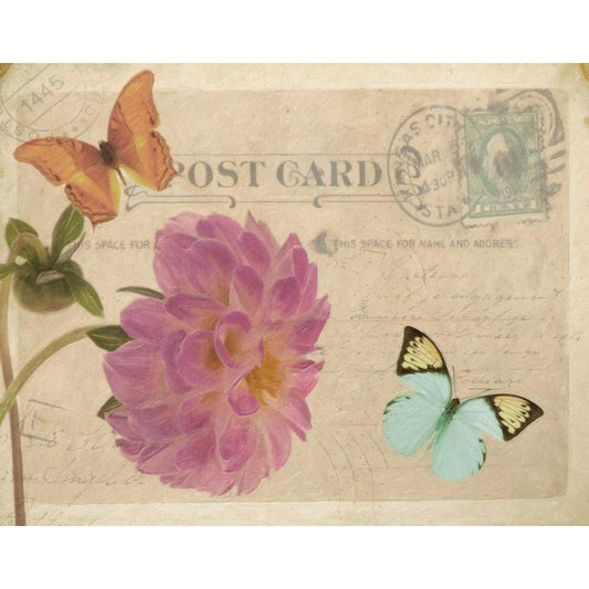 VINTAGE BUTTERFLY POSTCARD I White Modern Wood Framed Art Print by Greene, Taylor