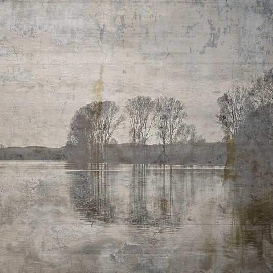 Romance On The Stream White Modern Wood Framed Art Print by Lewis, Sheldon
