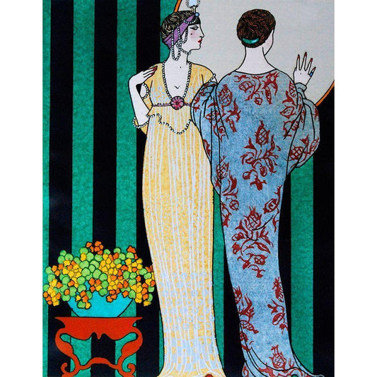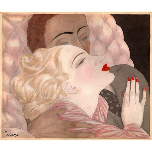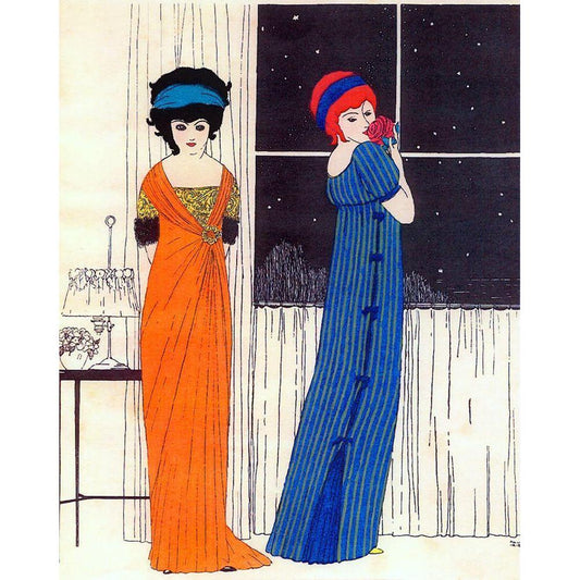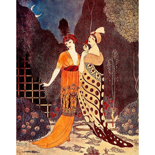 Barbier Two Ladies Under the Crescent Moon White Modern Wood Framed Art Print by Vintage Apple Collection