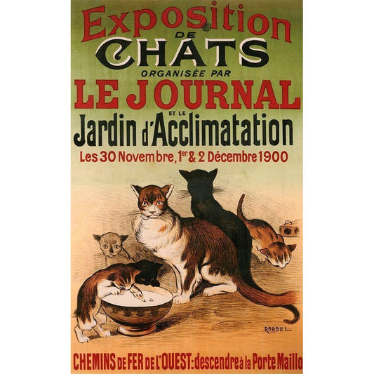 Exposition De Chats White Modern Wood Framed Art Print by Vintage Apple Collection