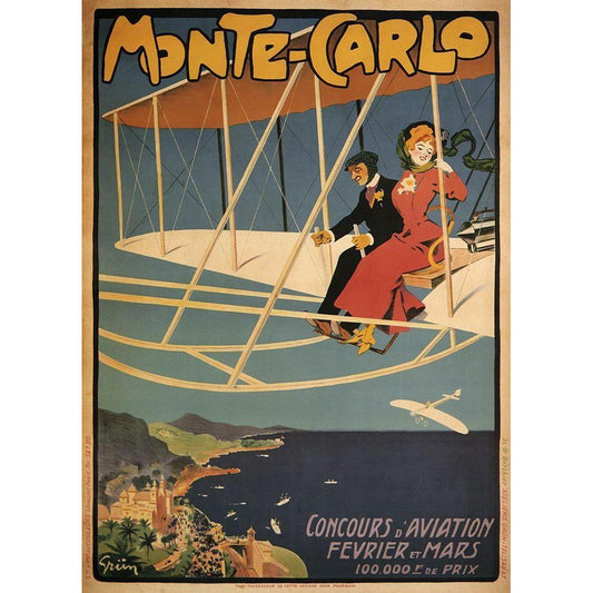 Monte Carlo Aviation Tours White Modern Wood Framed Art Print by Vintage Apple Collection