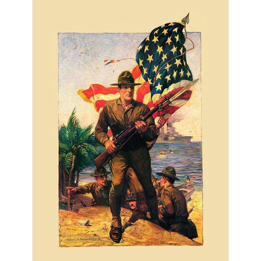 Mural Action Marines White Modern Wood Framed Art Print by Vintage Apple Collection
