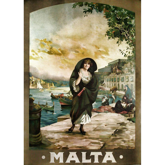 Malta White Modern Wood Framed Art Print by Vintage Apple Collection