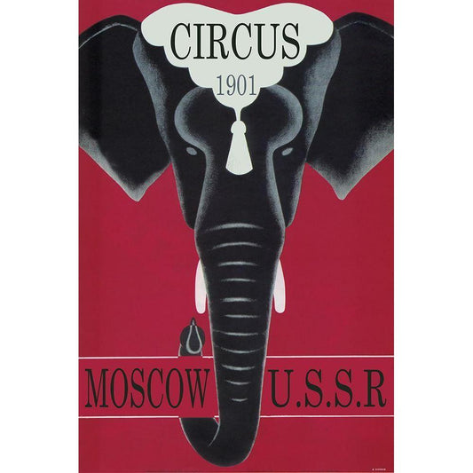 Moscow Circus Ussr White Modern Wood Framed Art Print by Vintage Apple Collection