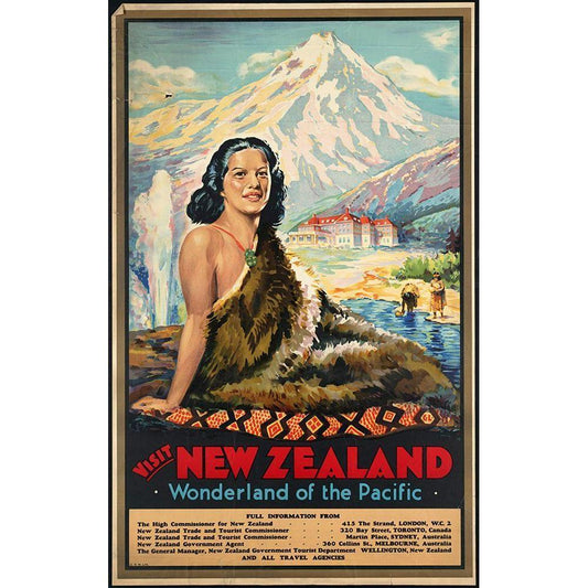 New Zealand Wonderland Of The Pacific White Modern Wood Framed Art Print by Vintage Apple Collection