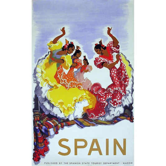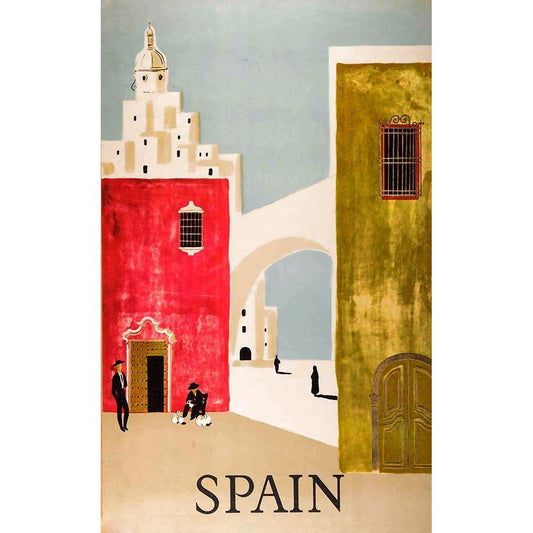 Vintage Travel to Spain White Modern Wood Framed Art Print by Vintage Apple Collection