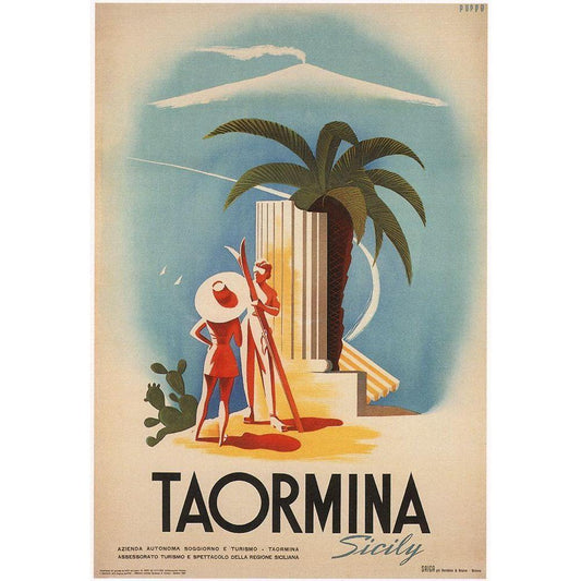 Taormina-Sicily White Modern Wood Framed Art Print by Vintage Apple Collection
