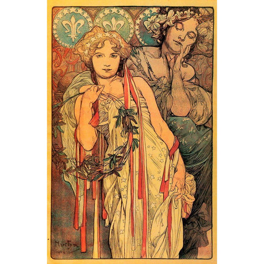 Mucha Job White Modern Wood Framed Art Print by Vintage Apple Collection