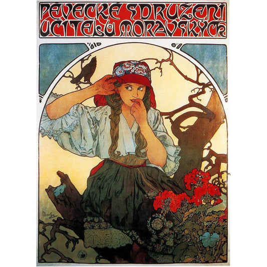 Mucha Moravsky White Modern Wood Framed Art Print by Vintage Apple Collection