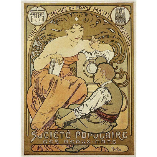 Mucha Societe Populaire White Modern Wood Framed Art Print by Vintage Apple Collection