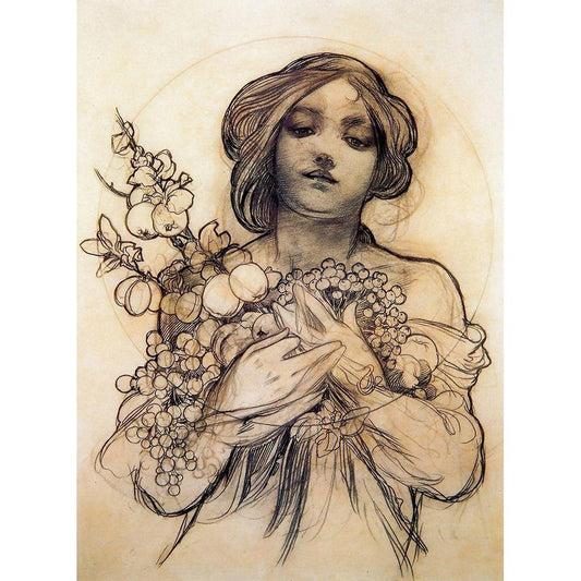 Mucha Study of Woman with Fruit White Modern Wood Framed Art Print by Vintage Apple Collection