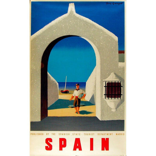 Spain Fisherman White Modern Wood Framed Art Print by Vintage Apple Collection