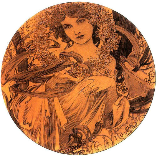 Mucha Autumn Medallion White Modern Wood Framed Art Print by Vintage Apple Collection