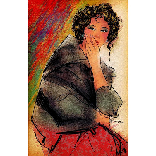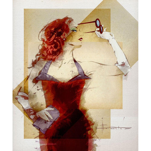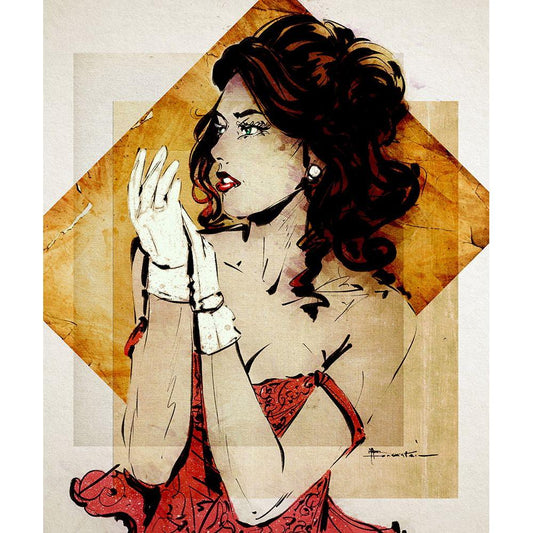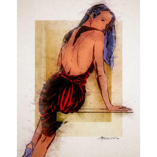 Lady In Red White Modern Wood Framed Art Print by TMBorenstein