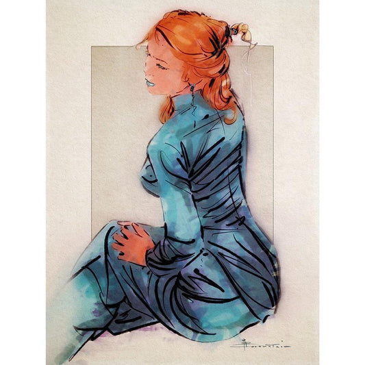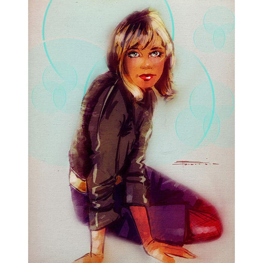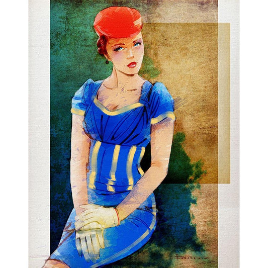 Woman In Blue White Modern Wood Framed Art Print by TMBorenstein