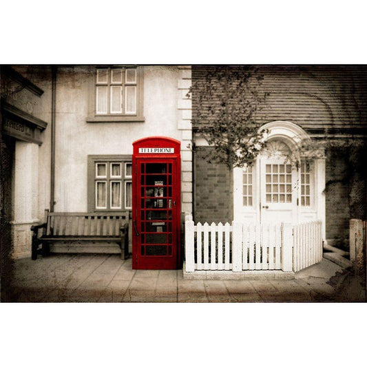 Red Telephone Booth White Modern Wood Framed Art Print by Lavoie, Tina