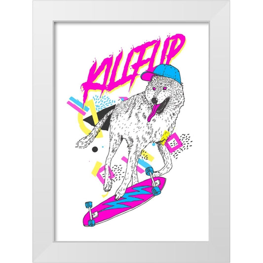 Kickflip Wolf V1 White Modern Wood Framed Art Print by Farkas, Robert