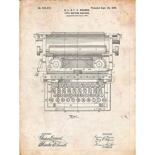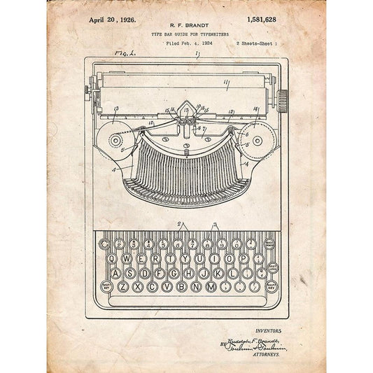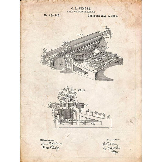 PP918-Vintage Parchment Last Sholes Typewriter Patent Poster White Modern Wood Framed Art Print by Borders, Cole