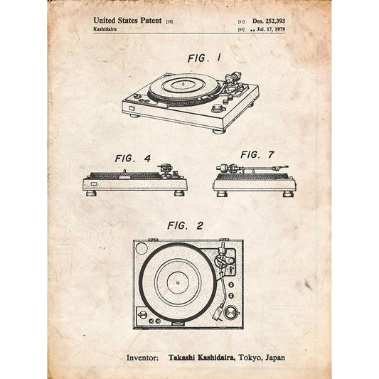 PP1028-Vintage Parchment Sansui Turntable 1979 Patent Poster White Modern Wood Framed Art Print by Borders, Cole