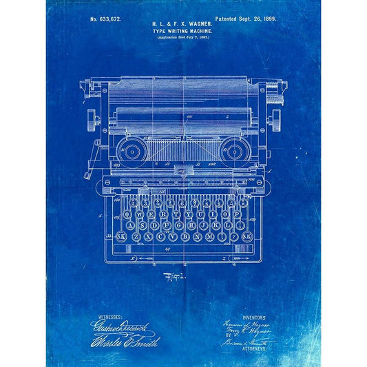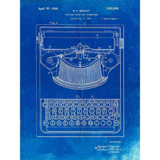 PP135- Faded Blueprint Dayton Portable Typewriter Patent Poster White Modern Wood Framed Art Print by Borders, Cole