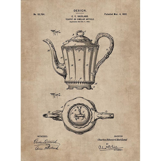 Patent Document of a Teapot White Modern Wood Framed Art Print by CAG