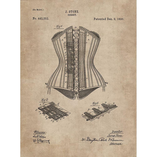 Patent Document of a Corset White Modern Wood Framed Art Print by CAG