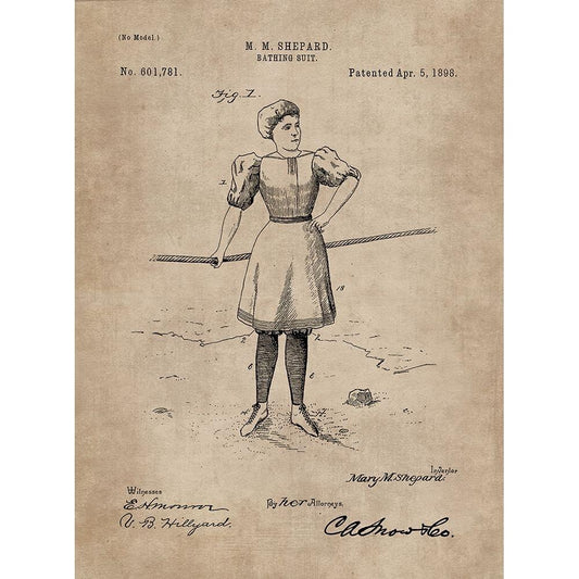 Patent Document of a Bathing Suit White Modern Wood Framed Art Print by CAG