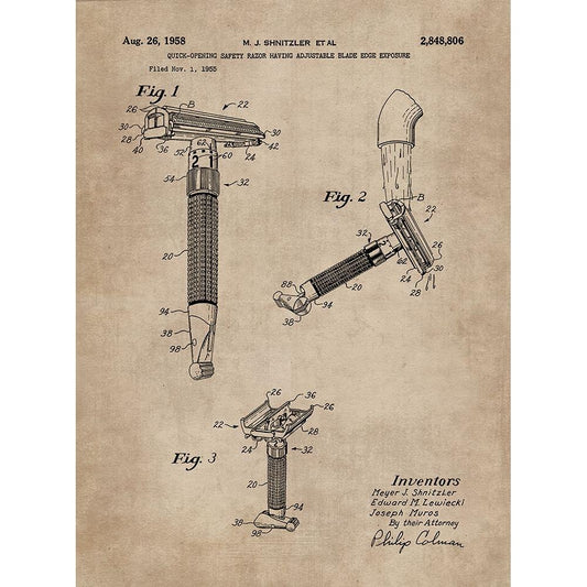 Patent Document of a Razor White Modern Wood Framed Art Print by CAG