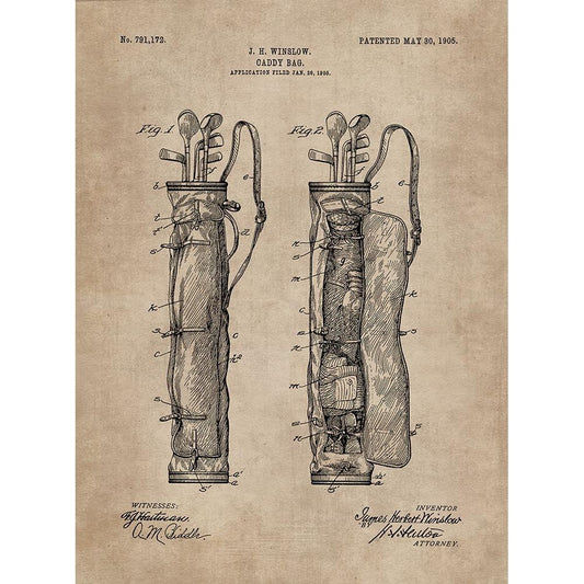 Patent Document of a Caddy Bag White Modern Wood Framed Art Print by CAG