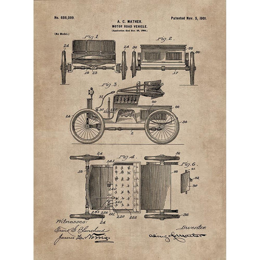 Patent Document of a Motor Road Vehicle White Modern Wood Framed Art Print by CAG