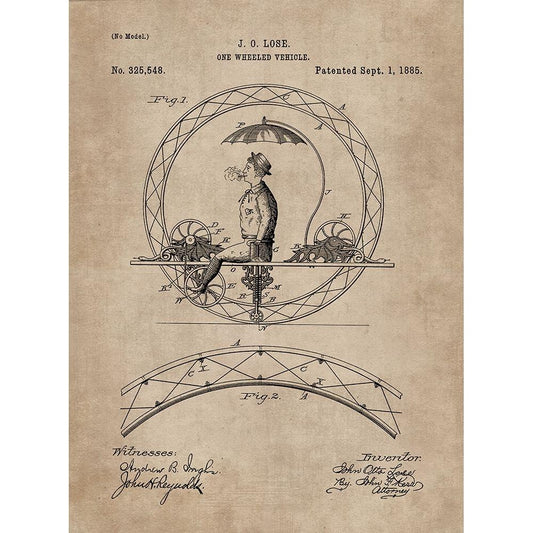 Patent Document of a One Wheeled Vehicle White Modern Wood Framed Art Print by CAG