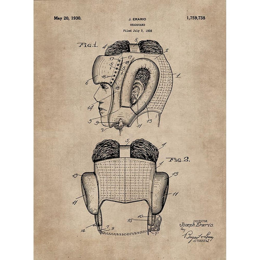 Patent Document of a Headguard for Boxers White Modern Wood Framed Art Print by CAG