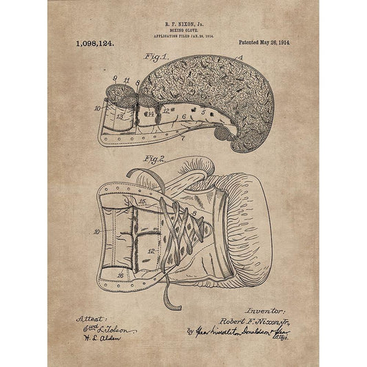 Patent Document of a Boxing Glove White Modern Wood Framed Art Print by CAG
