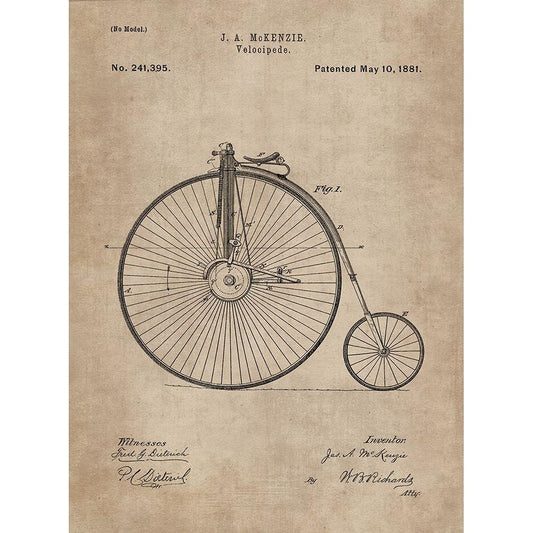 Patent Document of a Velocipede White Modern Wood Framed Art Print by CAG
