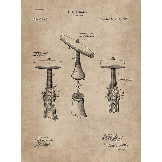 Patent Document of a Cork Screw White Modern Wood Framed Art Print by CAG