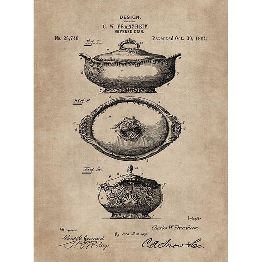 Patent Document of a Covered Dish White Modern Wood Framed Art Print by CAG