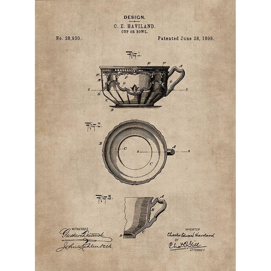 Patent Document of a Cup or Bowl White Modern Wood Framed Art Print by CAG