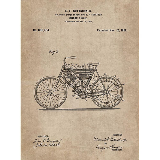 Patent Document of a Motor Cycle White Modern Wood Framed Art Print by CAG