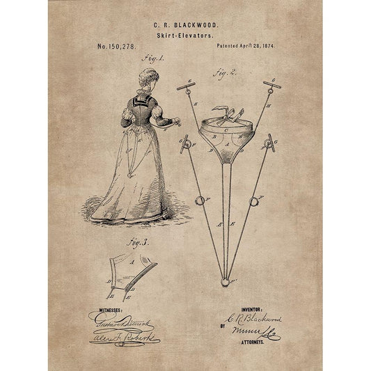 Patent Document of a Skirt Elevator White Modern Wood Framed Art Print by CAG