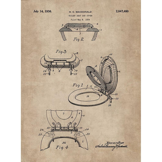 Patent Document of a Toilet Seat And Cover White Modern Wood Framed Art Print by CAG