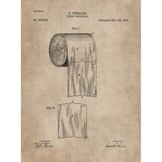 Patent Document of a Toilet Paper Roll White Modern Wood Framed Art Print by CAG