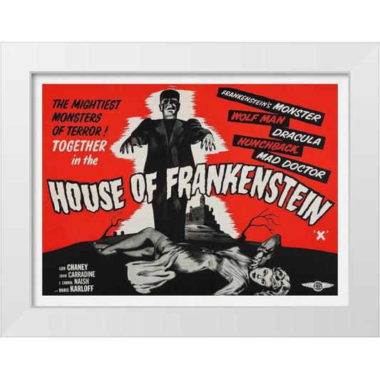House Of Frankenstein White Modern Wood Framed Art Print by Screendoor
